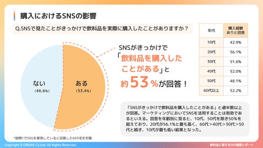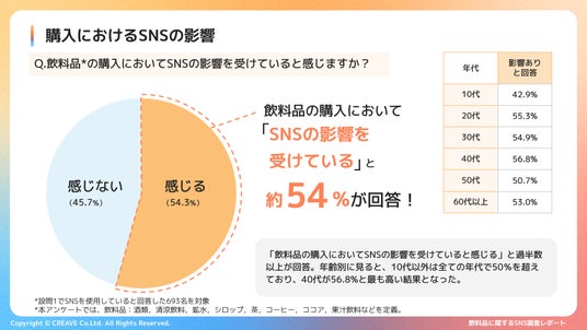飲料品の購入において、過半数以上がSNSの影響を受けている!