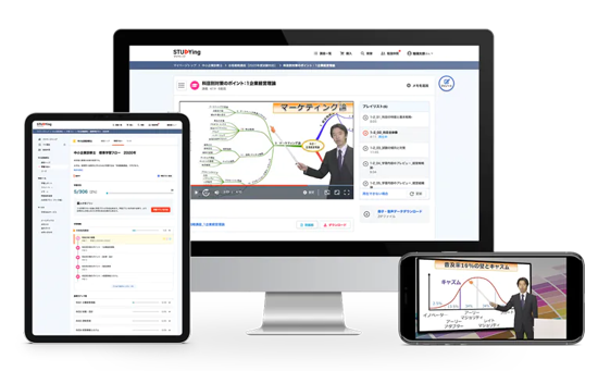 「スタディング」(https://studying.jp/)は、短期間で合格した人々の学習法を徹底的に研究し、10年以上も改善を重ねてきた究極のオンライン資格取得講座です。「忙しい方こそ、もっと活躍して頂きたい」その思いから「スタディング」は開発されました。私達が目指しているのは、世界一「学びやすく、わかりやすく、続けやすい」学習手段になり、皆様の持っている可能性を最大限に引き出すことです。
