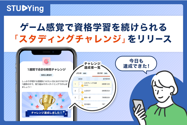 オンライン資格取得講座「STUDYing(スタディング)」を提供するKIYOラーニング株式会社(東京都千代田区、代表取締役社長:綾部貴淑)は、資格合格に向けた受講生の学習継続を支援する「スタディング チャレンジ」の提供を開始いたします。
