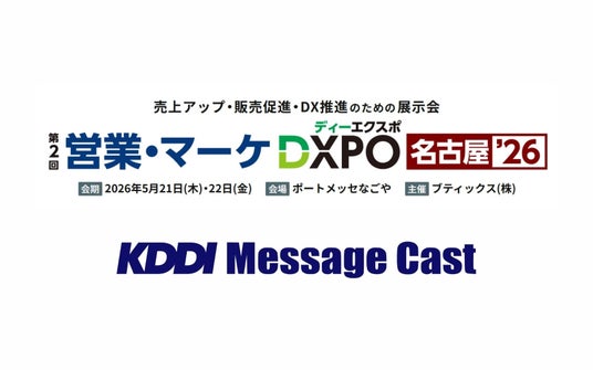 SupershipとKDDIが共同運営する法人向けメッセージ配信サービス「KDDI Message Cast」( https://kddimessagecast.jp/ )は、2026年5月21日(木)・22日(金)に開催される「第2回 営業・マーケDXPO 名古屋'26」に出展いたします。