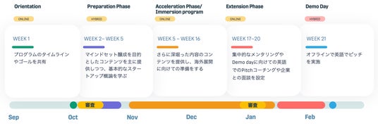 Preparation Phaseより一歩踏み込んだ実践的な内容のセミナーやワークショップが行われます。トピックは「プロダクトマネジメント」「海外展開を見据えたチーム作り」「PMFへの再現性」「エクイティストーリーの描き方」などを予定しています。そのほか、課題に応じた各領域における専門家との1時間の1on1メンタリングセッションやVC、投資家、大手企業とのネットワーキングイベントも行われます。