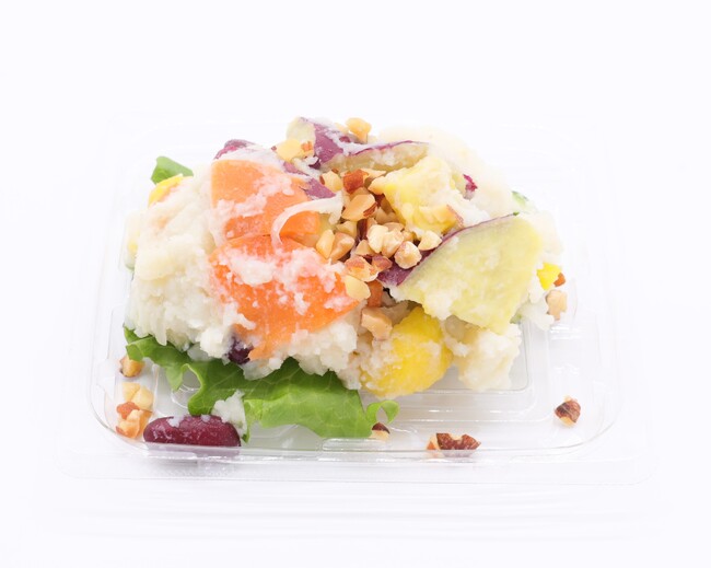 8品目の彩り豊かな素材の味・食感を存分に!:さつまいも、たまねぎ、きゅうり、レッドキドニー(赤いんげん豆)、 栗、にんじん、アーモンド、リーフレタスの8品目を使用。