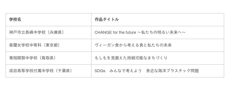 各学校部門で優秀賞を受賞した作品は、以下の通りです。