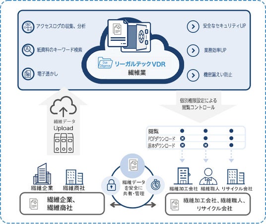 リーガルテックVDR (Virtual Data Room) は、繊維業において以下のような機能を提供し、さまざまな業務プロセスを支援することができます。