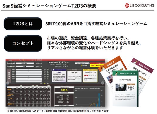 そういった知見を多くの方に吸収・体験いただけるよう、100社以上の事業グロース支援の実績を持つリブ・コンサルティングが、経営シミュレーションゲーム「T2D3」を開発。