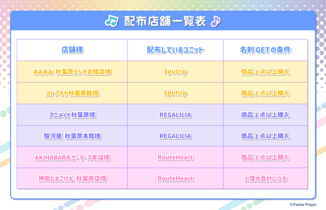 秋葉原の店舗でPalette Projectの各ユニット名刺を配布するキャンペーンを開催中です。
