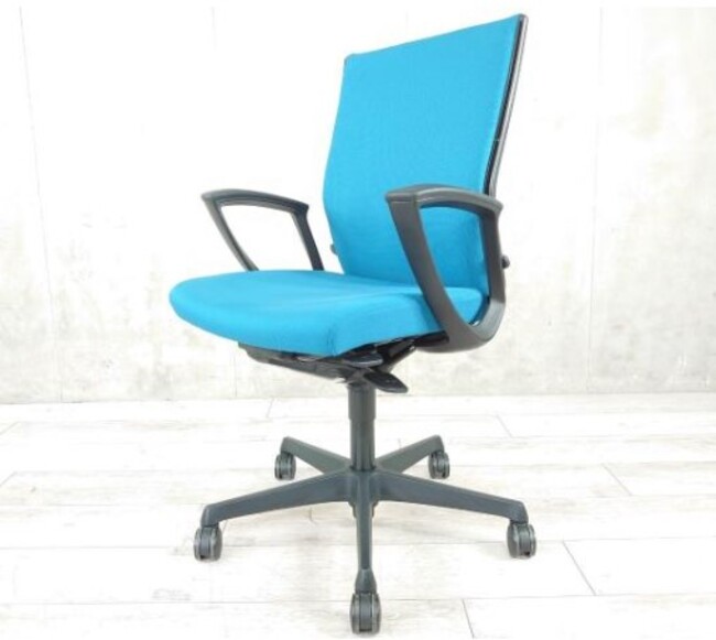 ◆色:ターコイズブルー ◆肘:デザインアーム ◆リクライニングの固定・解除、強弱調節 ◆座面奥行き調節(ストローク:50mm)◆座面高さ調節(ストローク:92mm)◆異硬度クッション ◆ランバーサポート