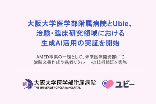 「テクノロジーで人々を適切な医療に案内する」をミッションに掲げるUbie株式会社(本社:東京都中央区、共同代表取締役:阿部吉倫・久保恒太、以下「Ubie」)と、国立大学法人 大阪大学医学部附属病院(以下「大阪大学医学部附属病院」)は、治験・臨床研究領域における生成AIを活用した業務効率化の実証を開始したことをお知らせいたします。本取り組みは、大阪大学医学部附属病院 未来医療開発部が推進する治験・臨床研究における生成AI活用モデルの確立に向けた技術検証の一環として日本医療研究開発機構(AMED)の「医療技術実用化総合促進事業」に基づき、実施するものです。