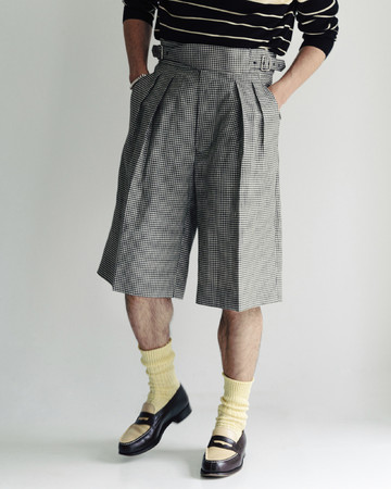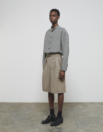 今回のコレクションは、ブランドがインラインで展開している人気モデル、“カラーレスシャツ”と、今回のために1から製作した “グルカショーツ”の2型を別注。