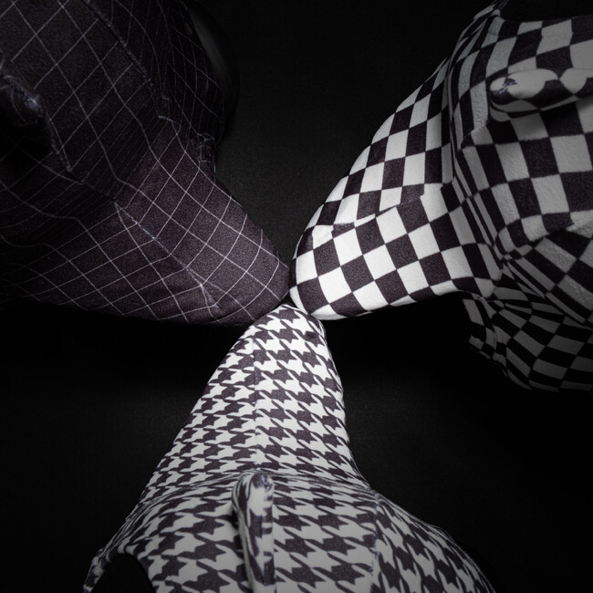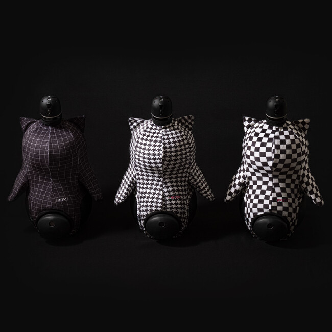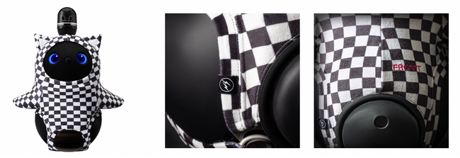 今回のコラボは『LOVOT』専用服の中でも大人気の「ねこみみウェア」をベースに、3種の異なる柄(格子・千鳥格子・市松模様)を使って製作しました。当社CCO(チーフ・クリエイティブ・オフィサー)でもある藤原ヒロシ率いる「fragment design」ならではの洗練されたデザインが加わったことで、可愛さのなかにクールでシックな印象も感じさせる新しいアニマルウェアが誕生しました。後面には今回のコラボのためにデザインされた「FRGMT」のロゴが入った刺繍、タグには「FRGMT」を象徴とするサンダーマークが施されており、より一層特別感が感じられる仕様になっています。