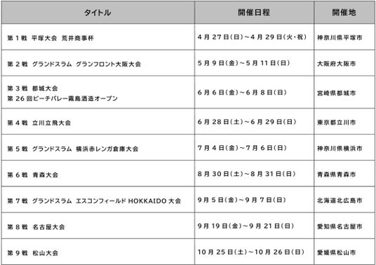 ジャパンビーチバレーボールツアーは、日本でのビーチバレーボール競技確立の一環として、また世界で活躍するビーチバレーボール選手の輩出を目標に、2014 年に設立されたビーチバレーボール国内最高峰の競技大会(スタート時点の名称は「JVAビーチバレーボールシリーズA」)です。
