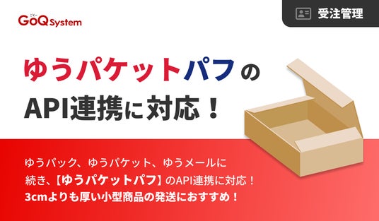 株式会社GoQSystem(本社:東京都中央区、代表取締役:藤本卓治)は、EC業務支援システム「GoQSystem」は【ゆうパケットパフ】のAPI連携に対応しました。