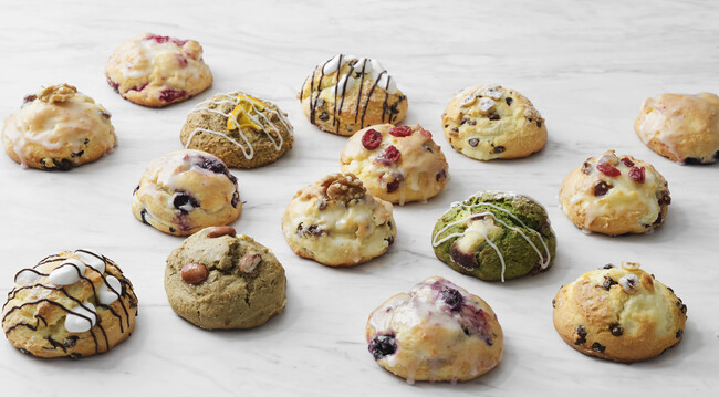 一般的に知られている筒型の「イングリッシュスコーン」とは違って、クリームチーズをたっぷり入れた生地にフルーツなどの具材を混ぜ込んだ、ハワイで人気のスコーンです。