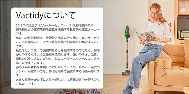 コンシューマ向け家庭用家電製品を手がけるVactidy株式会社はProscenic株式会社の子会社です。