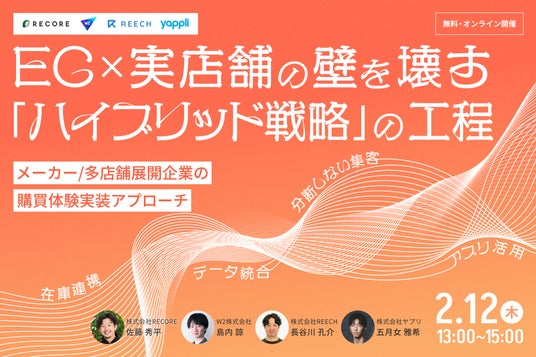 株式会社クロス・マーケティンググループのグループ会社でソーシャル&セールスプロモーションサービスを展開する株式会社エクスクリエ(本社:東京都新宿区、代表取締役社長:小笠原 亨)は、2026年2月12日(木)に、ECと実店舗の相乗効果を最大化させるための戦略設計をテーマにしたオンラインセミナー「EC×実店舗の壁を壊す『ハイブリッド戦略』の工程 ―メーカー/多店舗展開企業のための、購買体験実装アプローチ―」を開催いたします。