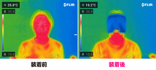 サーモグラフィで計測すると、装着するだけでこんなにもクールダウンしてくれます!