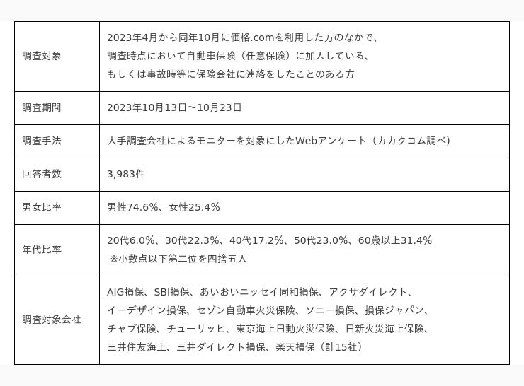 価格.com 自動車保険 満足度ランキング2024調査概要