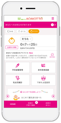 AOMOTTOは、妊娠期から子育て期をもっと楽しく、子育て情報をもっと手軽に、子どもの成長の記録や管理がもっと便利になるようとの思いを込めております。