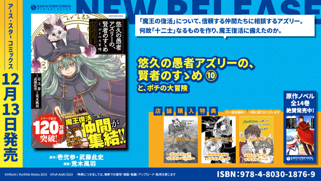 アース・スターノベルにて刊行中のノベルが原作で、現在コミック アース・スター公式サイトにて連載中の人気作品『悠久の愚者アズリーの、賢者のすゝめ と、ポチの大冒険』(原作:壱弐参・武藤此史 漫画:荒木風羽)第10巻を12月13日(水)に発売いたします。