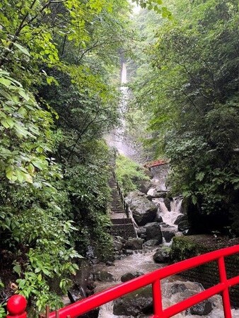 (左)洒水の滝 (右)神明社(「山北のお峰入り」伝承公演観覧場所)