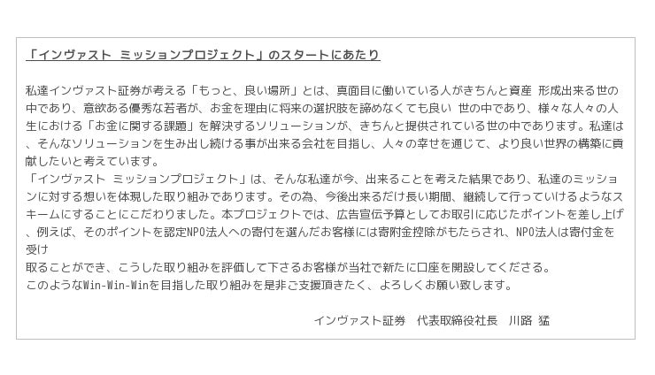 インヴァスト ミッションプロジェクト 特設サイト