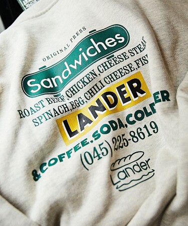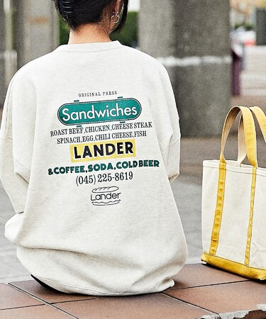 ■LANDER / 別注 ビッグシルエット バックプリント クルーネックスウェット