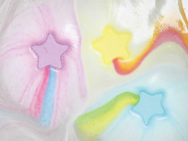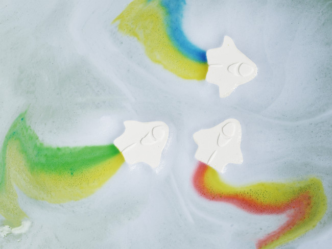 湯船に浮かべるとしゅわしゅわ溶けてカラフルな色が出現する入浴料の登場です。