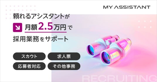 株式会社キャスター(本社:宮崎県西都市、代表取締役 中川祥太、以下「キャスター」)が運営するリモートアシスタントサービス「My Assistant(マイアシスタント)」は、2024年5月9日より月額2.5万円(税抜)で採用業務のアウトソースが可能な「マイアシ recruiting(マイアシ リクルーティング)」の提供を開始いたします。
