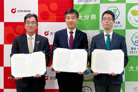 日本全国47都道府県のカーボンニュートラル実現を目指す株式会社バイウィル(本社:東京都中央区、代表取締役社長:下村 雄一郎、以下「バイウィル」)は2024年12月18日、大分県(知事:佐藤 樹一郎)、株式会社大分銀行(本店:大分県大分市、取締役頭取:高橋 靖英、以下「大分銀行」)と、大分県のカーボンニュートラル実現に向けた3者連携を開始しました。