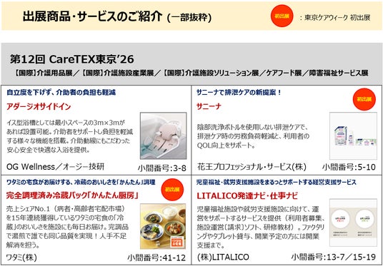 展示会事業、M&A仲介事業、人材採用支援事業を展開するブティックス株式会社(東京都港区、代表取締役社長 新村祐三、東証グロース上場 証券コード:9272)は、2026年2月25日(水)~27日(金)の3日間、 「CareTEX東京」「Careテクノロジー東京」「ヘルスケアJAPAN東京」「からだケアEXPO東京」の4展で構成される「東京ケアウィークʼ26」を東京ビッグサイトにて盛大に開催する。本展には、業界の主要企業約400社が出展。