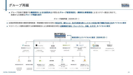 グループ全体で重複する機能統合による生産性向上や更なるグループ経営高度化・横断的な事業推進によるシナジー創出に向けて、来期から大規模なグループ再編を実行いたします。
