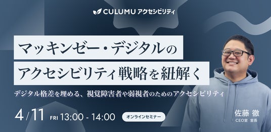 4月11日(金)13時から「マッキンゼー・デジタルのアクセシビリティ戦略を紐解く ~デジタル格差を埋める、視覚障害者や弱視者のためのアクセシビリティ~」 セミナーを開催します。