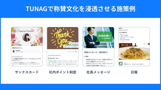 エンゲージメント向上から業務DXまで実現できるTUNAG(ツナグ、https://biz.tunag.jp/ )を展開する株式会社スタメン(東京本社:東京都千代田区、代表取締役:大西 泰平、以下 当社)は、お役立ち資料「TUNAG導入事例集 サンクスカード編」を無料公開いたしました。