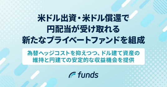 固定利回り投資の資産運用サービス「Funds(ファンズ)」を運営するファンズ株式会社(本社:東京都渋谷区、代表取締役CEO:藤田雄一郎、以下 当社)はこの度、投資家の皆さまから米ドル建てで出資いただき、国内上場企業に対し米ドル建てで貸付を行い、円建てで利払いを受けて投資家の皆さまへ配当する匿名組合型ファンド(以下「本ファンド」)を新たに組成いたしました。国内で本ファンドと同様のスキームでの匿名組合型ファンドの組成が公表されている例はなく、画期的な取組みであるといえます。