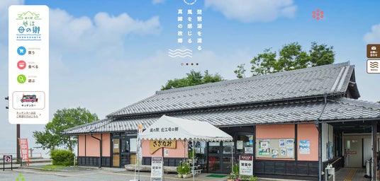 歴史上優れた女性を生み出してきたことから、地域のイメージは「母の郷」。東には秀峰伊吹山、眼前には母なるびわ湖。この素晴らしいロケーションのもと、テニスコートでの軽スポーツなども楽しめ、市内で採れた野菜、花などの農産物や湖北地域の特産品などを提供する物産コーナーも人気がある道の駅です。