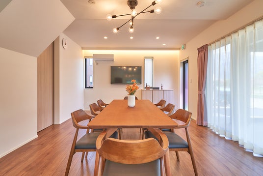 1棟貸切型のプライベートヴィラは、伊吹山の麓にあり、季節ごとに表情を変える伊吹山や緑豊かな自然を眺めながら、家族や仲間でゆったりと過ごせます。