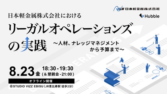 法務と事業部門の協業性を高める契約業務・管理クラウドサービス「Hubble(ハブル)」を提供する株式会社Hubble(東京都渋谷区、CEO:早川晋平)は、2024年8月23日(金)18:30-21:00にて、日本軽金属株式会社 法務部森本 大介氏をお招きし、「日本軽金属株式会社におけるリーガルオペレーションズの実践―人材、ナレッジマネジメントから予算まで―」と題したオフラインイベントを開催いたします。本イベントは事前登録制です。