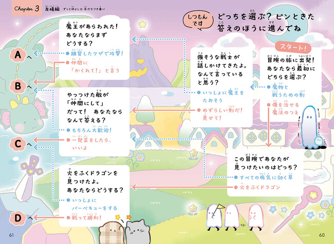思わず答えたくなる楽しい質問と、ドキッとする深~い診断、キュートなイラストが盛りだくさん。心理テストは「性格」「友情」「恋愛」「未来」の4テーマで、「あなたはどのオバケーヌタイプ?」がわかるキャラクター診断や、オバケーヌのキャラ図鑑も収録しています。