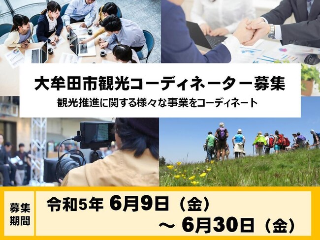 大牟田市観光基本計画に掲げる各種取組(事業)の推進において、計画に関わる様々な人、事業者、組織間それぞれの連携を進めることで、取組みの効果を高めるとともに、大牟田市への来訪者の増加や消費の拡大につなげていくことを目的に活動を行う、「観光コーディネーター」の募集に係る公募型プロポーザルを以下のとおり実施します。