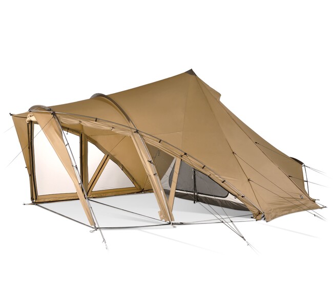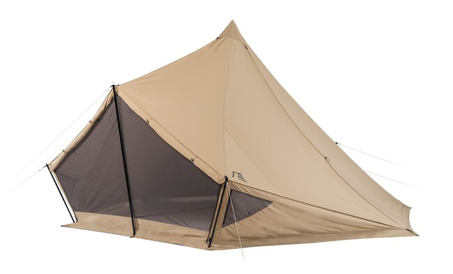 ワンポールとフレームワークを組み合わせた新しいスタイルの2ルームシェルター。ワンポール構造により設営の簡便さと広い空間面積を実現したテントです。