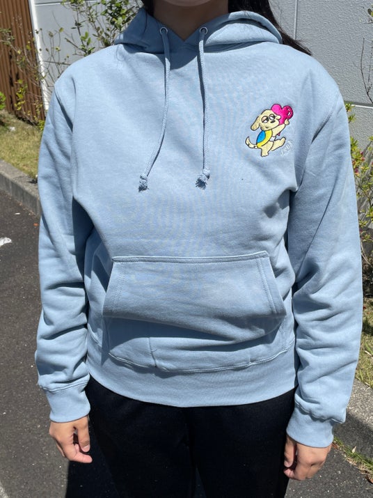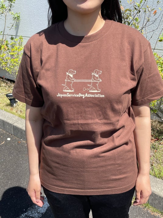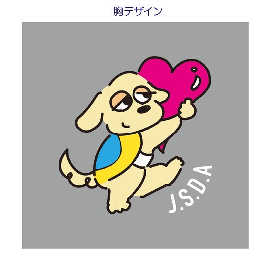 胸元にワンポイントでハートに寄り添った介助犬のイラストがデザインされている。