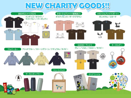 新チャリティーグッズのデザインは一般の方から公募したデザインを使用した商品をメインに、衣類や雑貨など様々な商品展開がある。