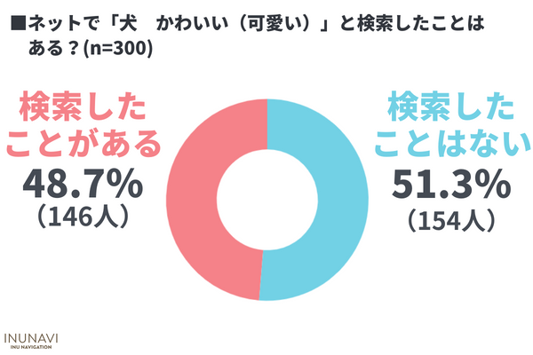 ネットで「犬 かわいい(可愛い)」と「検索したことがある」のは48.7%でした。