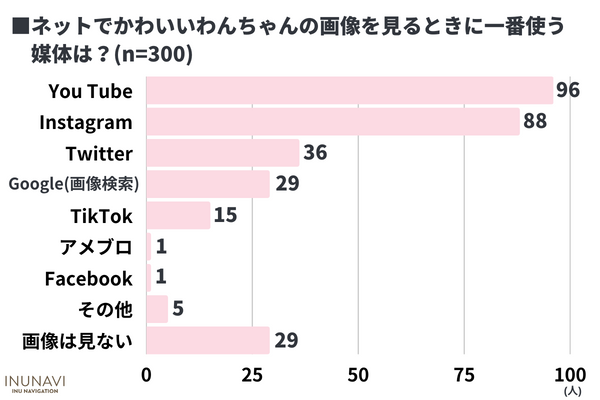 かわいいわんちゃんを見るときに一番使う媒体は「YouTube」96人が最多!