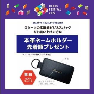立川生まれの人気鞄ブランドSTARTTSのビジネスバッグをご購入いただいた方に、製造過程で生まれた端材を活用した本革のネームホルダーに無料名入れをしたものを先着順でプレゼントいたします。※お渡しにお時間を頂く場合がございます。
