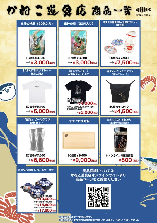 『かねこ道具物産展』ではこれまで販売された「かねこ道具店」のヒット商品をはじめ、新商品やイベントPOPUPオリジナルグッズも販売いたします。