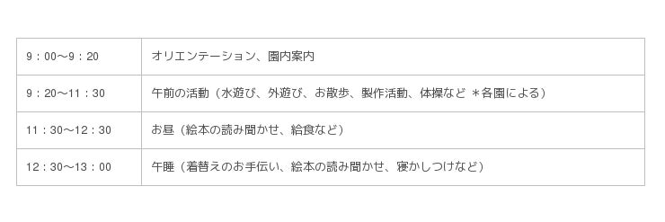 定 員 : 各園 1日3名程度
