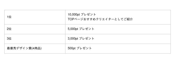 コンテスト1位の方には、オリラボマーケットで使用できる10,000pt、販売サイトにデザインされたアイテムのお写真、お名前の掲載、インタビュー記事の作成などの賞品をご用意。