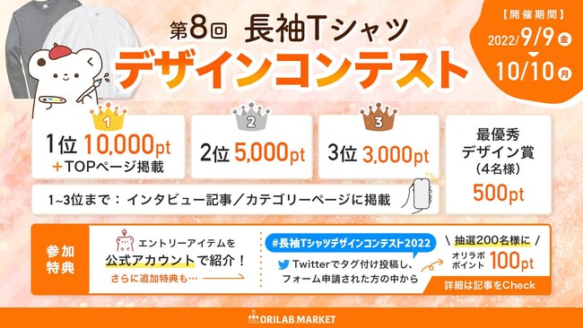 オリジナルラボ株式会社(本社:東京都渋谷区)の展開するオリラボマーケットは長袖Tシャツデザインコンテストを実施いたします。