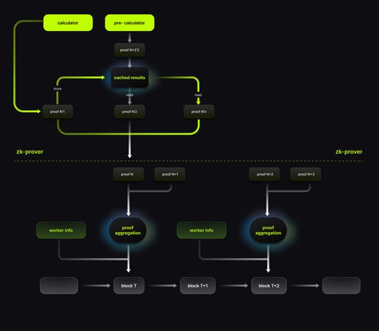 zkProverは、Lumozプロトコルの中核を成すコンポーネントであり、ゼロ知識証明(ZKP)の計算を担当します。タスクの分割、並列計算、証明の集約を活用することで、ZKP計算の効率を高め、全体的なコストを削減しています。